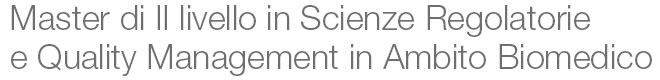 Il Master universitario di II livello in Scienze regolatorie e quality management in ambito biomedico è un percorso post Laurea che nasce dalle nuove esigenze professionali di Aziende e Autorità operanti nel Settore Sanitario ed Industriale con lobiettivo di formare professionisti con adeguate competenze nel campo delle attività regolatorie e del quality management system. In particolare, lampio spazio dedicato alle attività di didattica interattiva e allo stage permetterà di acquisire sul campo le competenze per preparare dossier tecnici di registrazione e operare nel campo del sistema di qualità aziendale al fine dellottenimento della certificazione di sistema e di prodotto in un contesto interattivo e multiplisciplinare in grado di stimolare e potenziare le capacità di problem solving.